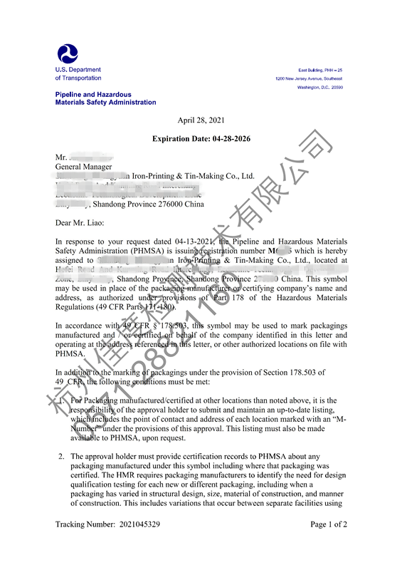 2. DOT-2P,TC-2P :在54.5下压力值在140psig到160psig之间,最小变形值是160psig,最小爆破值是240psig,最小厚度0.007英寸,罐体上必须打上DOT-2P字样和工厂DOT注册号。